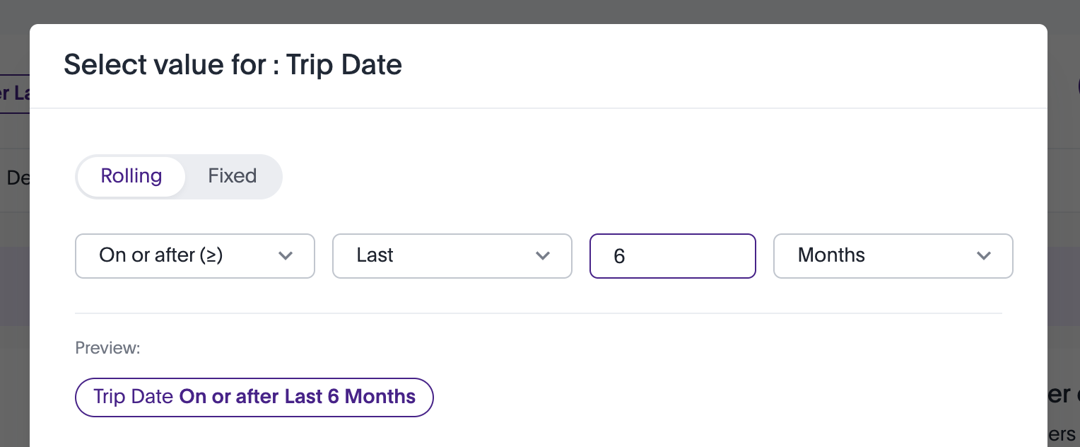 In this example, “Trip Date On or after Last 6 Months” has been selected.