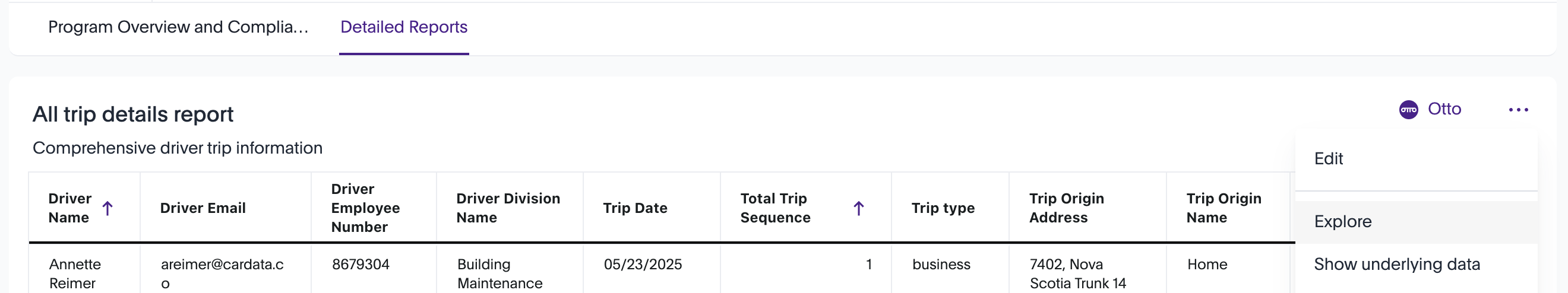 If you need more customization, head to the Detailed Reports tab for further filtering and editing optionsThe Detailed Reports section of Cardata Intelligence gives you the tools to slice, filter, and customize your program data to fit your unique reporting needs. This functionality is available specifically in table report views, where you can adjust filters, fields, and formats for deeper insights.Whether you’re segmenting by policy, region, time period, or risk level, table views put powerful customization at your fingertips.
