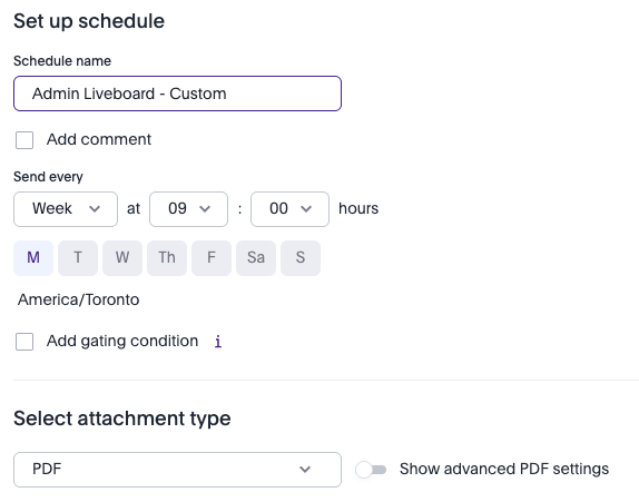 - Set your delivery cadence (such as weekly or monthly) and time of day