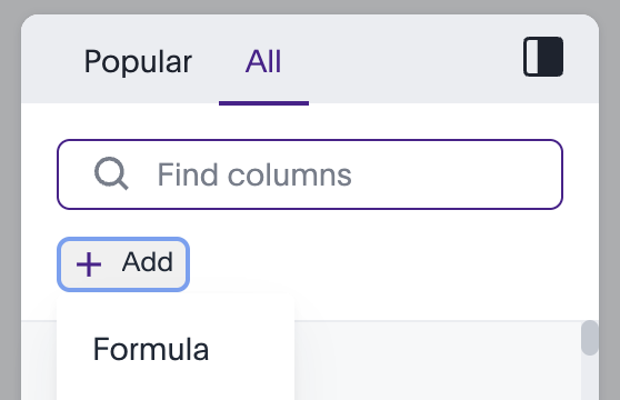 Scroll to the All Columns section and click Formula to create a new column.