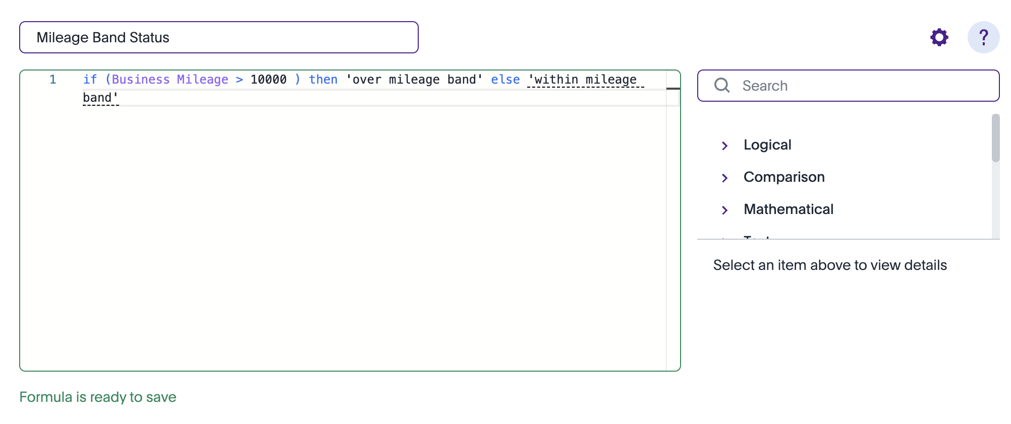 You can use Excel-style logic to build your own formula, for example, to flag trips that exceed a mileage threshold. Give your column a name and save it. Your custom calculation will appear instantly in the report.